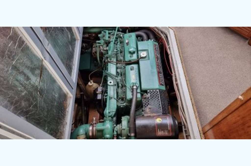 Launched approximately 1985, double diagonal timber glassed construction, designed by Frank Pelin. Reportedly built by Colin Bertelsen, in 42ft LOA 12.14 Beam 5.2 Draft. Powered with a 430HP TAMD73 Volvo (reportedly with 5500 hours on a rebuild engine) with shaft drive. A bow thruster is fitted for excellent berthing etc. Reported cruse speed at 1800rpm is approx. 15knots and 2600rpm approx. 20knots.