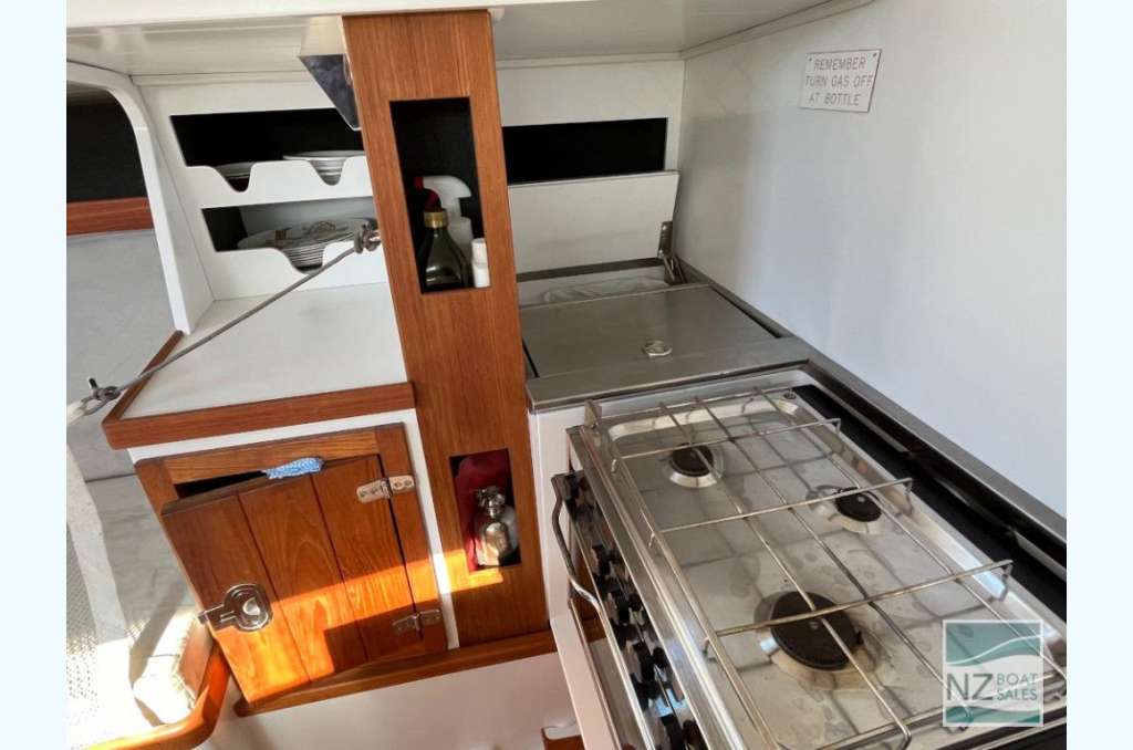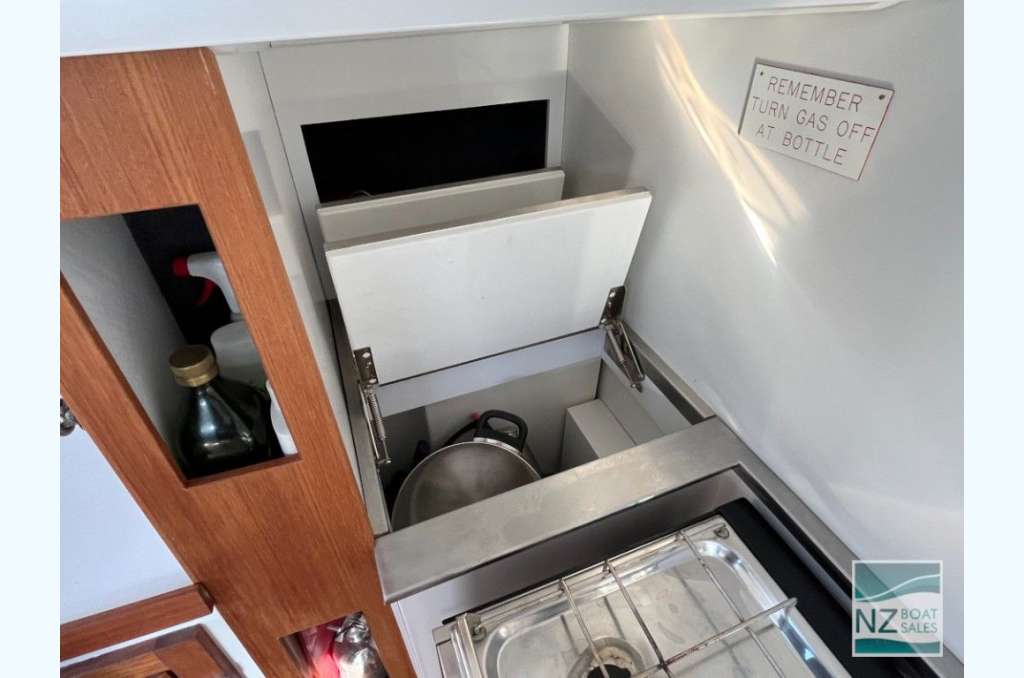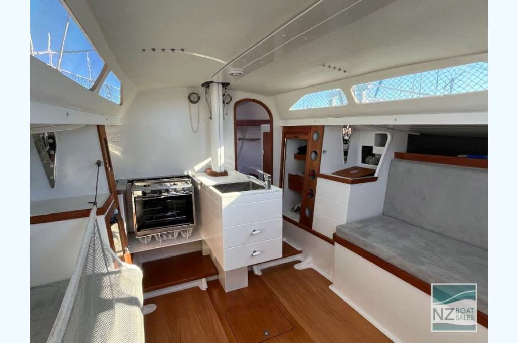 An awesome offshore boat or coastal cruiser in top condition, with every facility for exciting racing and comfortable cruising. Designed by internationally recognised Kiwi designer Laurie Davidson, she’s a joy to handle and does not need the running backstays when cruising or taking the family to Waiheke. She has been in Cat 1 in 2006 (still has Cat 3 currently) and would be eligible again for Cat 1 for your next big trip offshore to Fiji. It can be sailed two-handed with furling headsails and slab reefing on the main. Plus – a self-tacking headsail if you are short-handed.