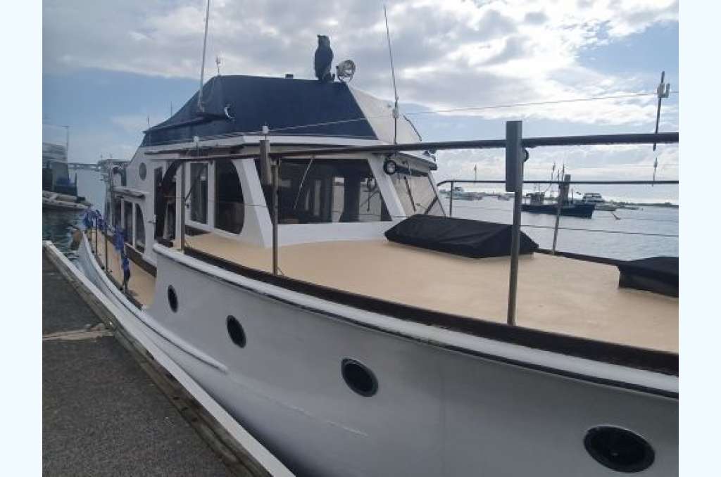 Miller and Tunnage Kauri Displacement, classic bridgedecker, launched 1928. Powered by 120hp Ford diesel. Electric capstan, internal access to flybridge, side opening doors, solar panels, battery charger, 2000W inverte. Electric toilet, 12v fridge, freezer, 2 burner stove, 2 cabins, 5 berths. Electronics include VHF, fishfinder, autopilot, stereo, TV. A great classic with history, ideal live a board.