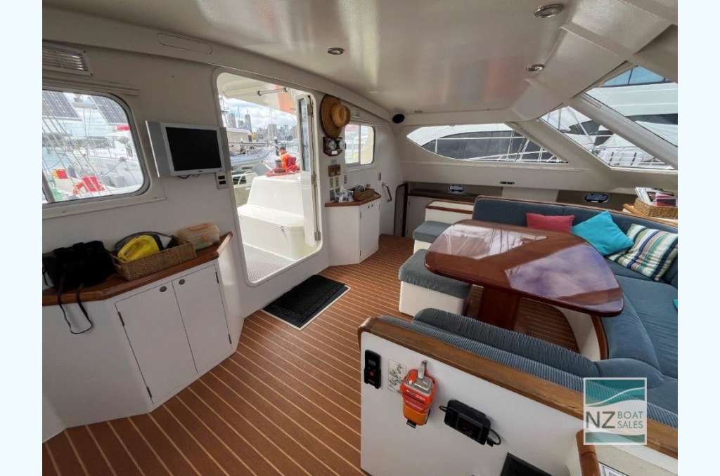 A cruising catamaran with good performance - Katariana was designed by Ron Given and built by Aaron Beattie Lifestyle Yachts to charter boat standard for her current owner. She's a superb example of a purpose-built performance cruising cat with everything needed for long-distance offshore passage making. Super comfort, accommodation for six, two heads and systems to treat you to every needed comfort aboard are a feature of this boat. Two wheels positioned perfectly for protection and visibility, where both are essential, combined with all lines leading to the helm stations and twin daggerboards, make Katariana a breeze to handle, yet fast both upwind and down.