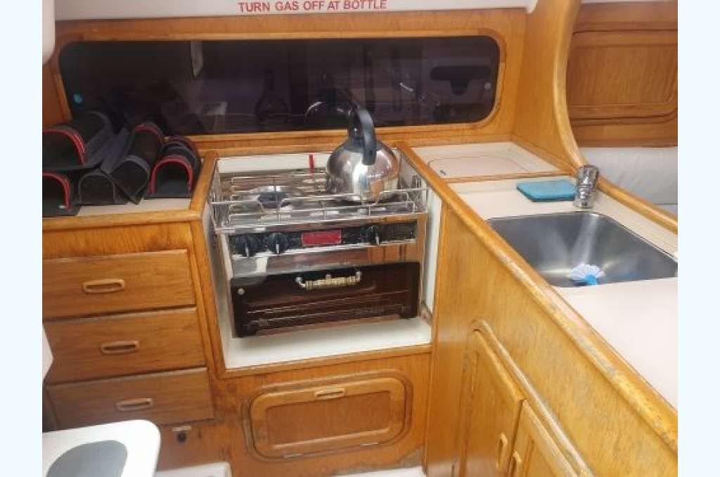 Ross 35 MK11, GRP Construction, launched 1993, powered by 26 HP Yanmar diesel, shaft drive, Carbon Fibre mast and boom, spin pole, S/S rigging, Carbon main, extensive sail wardrobe, tiller steering, 2 winches in cockpit, 2 cabin top, chain/warp capstan, new warp and chain, 6-man life raft, EPIRB, battery charger, 2 alternators, holding tank, toilet, 12 V fridge, 2 burner/grill, 1 double, 4 single berths. Electronics include VHF, GPS/plotter/fishfinder combo, autopilot, depth, wind, log, stereo/CD player. A very competitive cruiser/club racer all set to go sailing.
