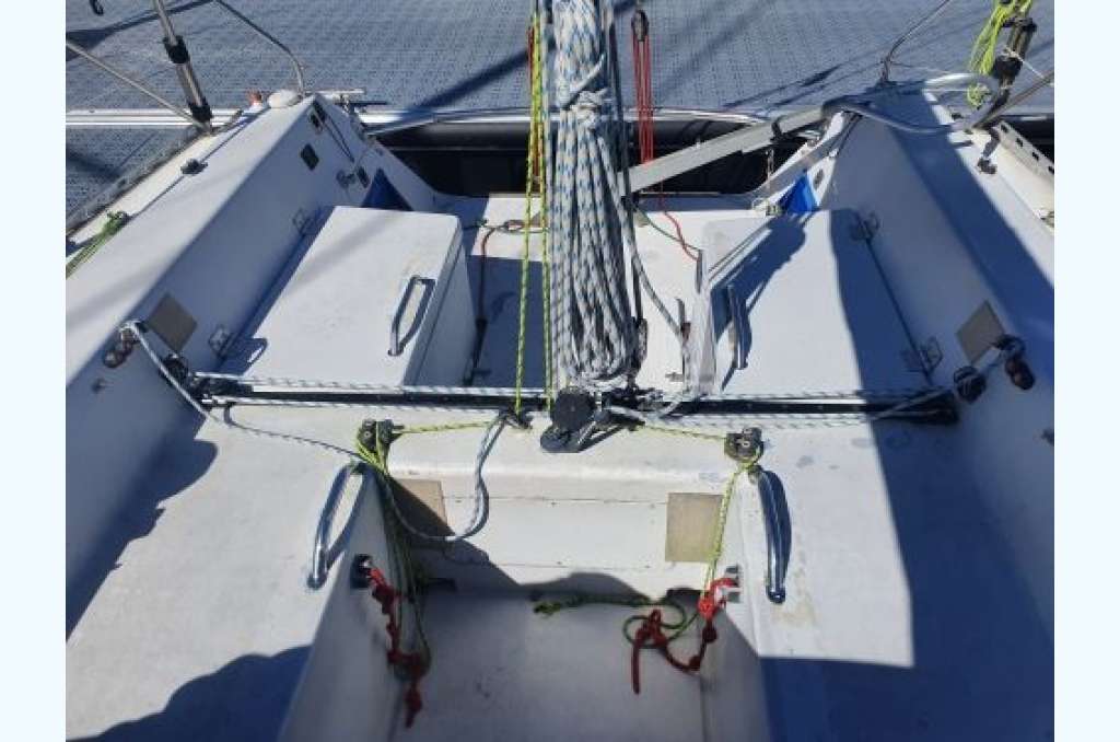 Sails | Main x 2, No.4, No.2 (120%) spinnaker, storm jib, No.3. Carbon fibre mast and boom, Main Carbon 1 year old, no 1 carbon 1107, no2 Blade 1106, no3, Mast head Symmetrical new, faction symmetrical new, Code 0 Masthead, fractional A5, Carbon boom, Carbon spi |